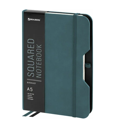 —Блокнот А5, BRAUBERG 'NOTE', под кожу софт-тач, с резинкой, 80 л., клетка, светло-серый, 113441