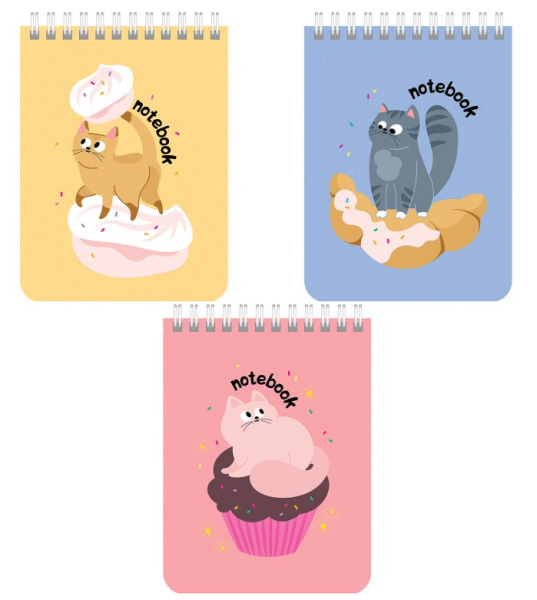 —Блокнот 'Котики', А6, 40 листов, на гребне, клетка, 114396