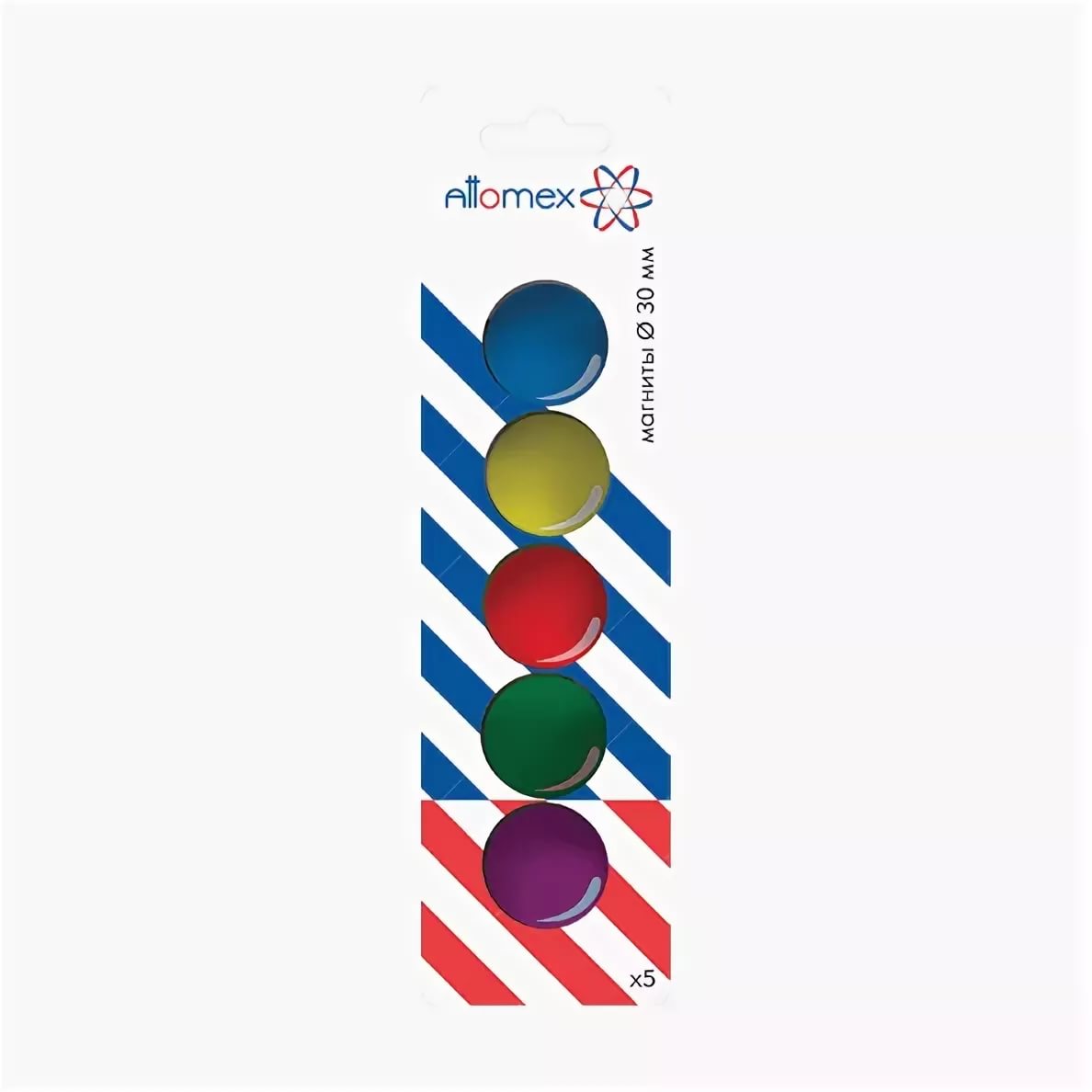 —Магнит для доски офисной 'Attomex' Ø 30 мм, 5 шт, цвета ассорти, в картонном блистере, 6021701
