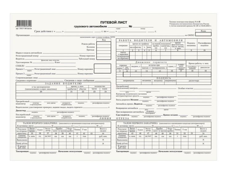 Путевой лист грузового автомобиля А4, 130137