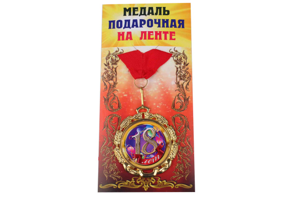 —Медали именинникам на ленте металлические 18 лет D=6,5 см.