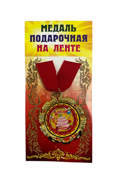 —Медаль подарочная на ленте металлическая С днем рождения! D=6,5 см.