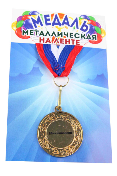 —Медаль металлическая на ленте Именинница D=4 см.