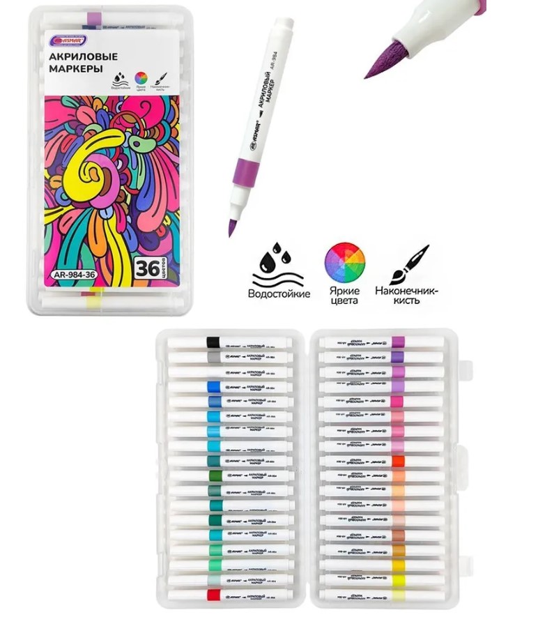 —Маркеры акриловые, ASMAR, 36 цветов, AR-984-36