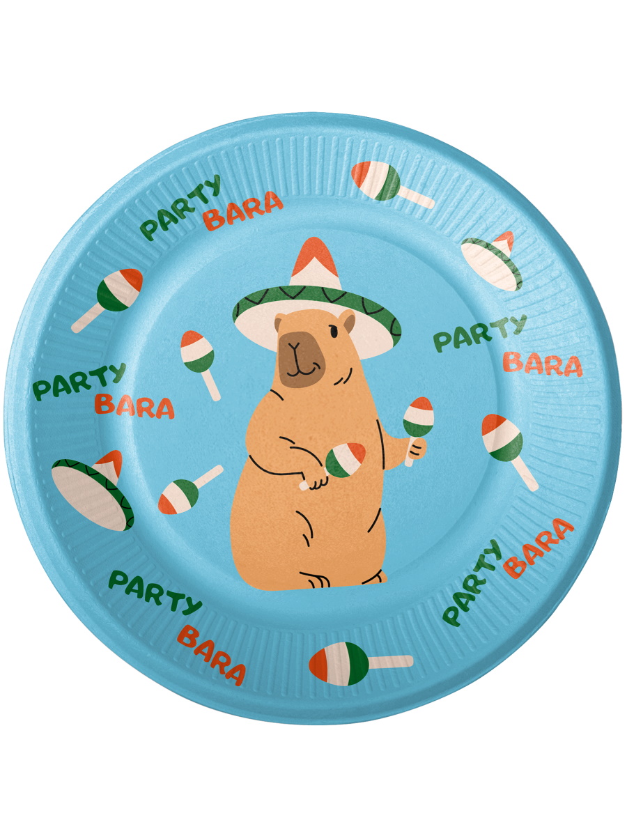 —Набор тарелок бумажных 'Капибара танцует', 18 см, (6 шт;уп), ТМ-3843