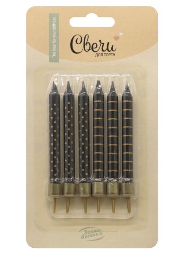 —Свечи Золотые точки, Черный, Металлик, 0,5х6 + 1 см, 8 шт. с держат., 627052
