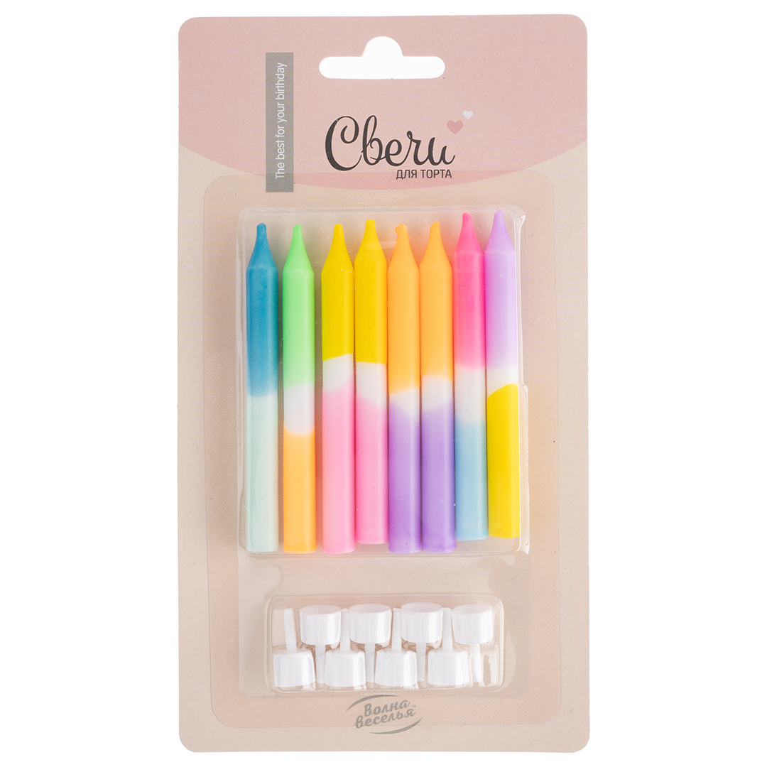 Свечи Волшебный микс, Ассорти, Градиент, 0,55х8 + 1 см, 8 шт. с держат, 630256