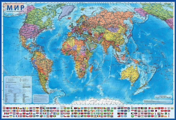 —Карта географическая Мир Политический Карта Настенная 1-21,5 м. (157 х 107 с ламинацией), КН063