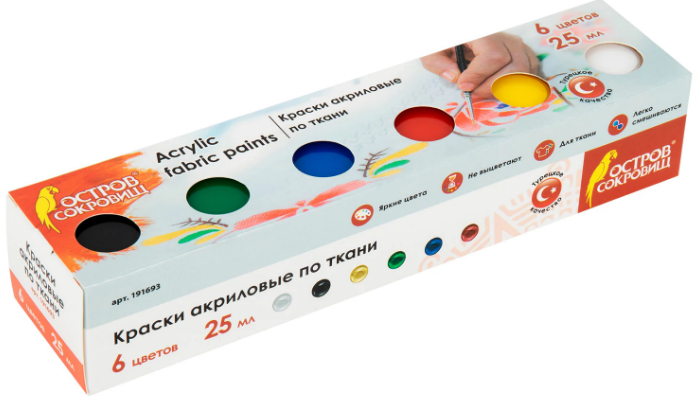—Краски акриловые по ткани, 'Остров Сокровищ', 6 цветов, 25 мл, 191693