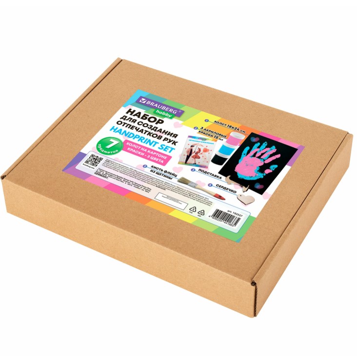 —Набор отпечатки рук- холст 18х24 см, акрил 3 цвета, кисть + сертификат и подставка, 192527
