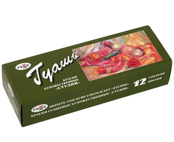 —Гуашь художественная Гамма 'Студия', 12 цветов, 40 мл, картон. упаковка, 221029