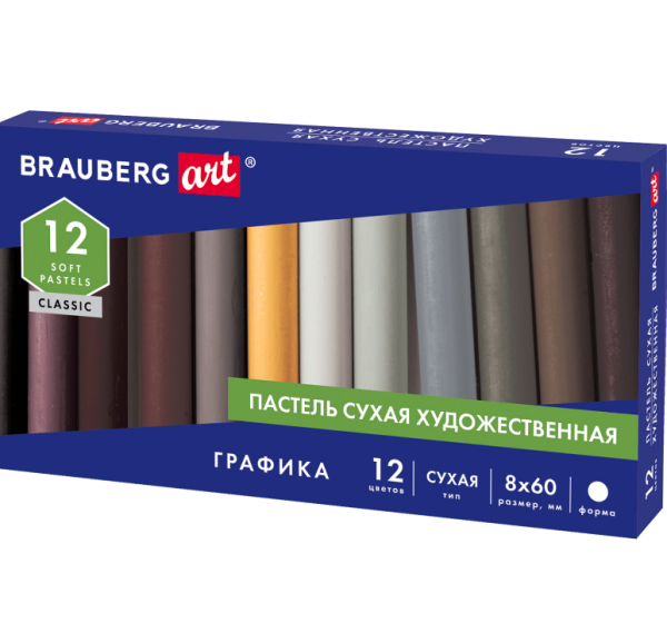 —Пастель сухая художественная BRAUBERG ART CLASSIC, 12 цветов, круглое сечение, 181458