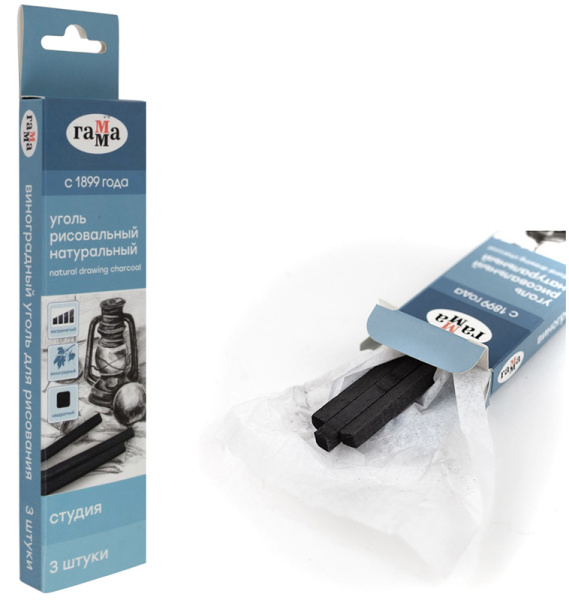 —Уголь рисовальный натуральный Гамма 'Студия' экстрамягкий квадратный (3 шт;уп), 080219_01