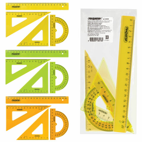 —Набор чертежный средний 'ПИФАГОР', (линейка 20 см, 2 треугольника, транспортир), 210626