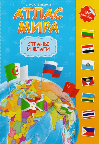—Атлас мира 'Страны и флаги', А4 , 8 листов с наклейками, 978-5-906964-96-0
