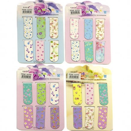 —Набор магнитных закладок, Alingar, 120х20 мм, Цветочки, (6 шт;уп), европодвес, AL6704