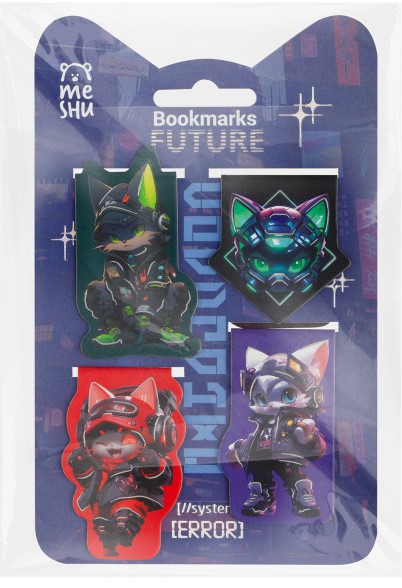 —Закладки магнитные для книг, 4 шт, MESHU 'Future', матовая ламинация, фольга, MS_66064
